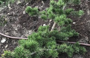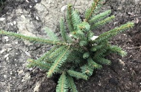 W drugim etapie prac (rok później) uzupełniliśmy nasadzenia przy skarpie nad piaskownicą, oraz wzdłuż schodów do naszego domu prowadzonych od ulicy Słonecznej. Tutaj dominowały świerki i sosny w kilkunastu odmianach.
